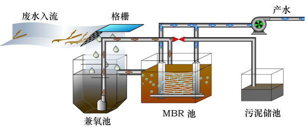 膜生物反應器(MBR)工藝是膜分離技術與生物技術有機結合的新型廢水處理技術。它利用膜分離設備將生化反應池中的活性污泥和大分子有機物質截留住,省掉二沉池。活